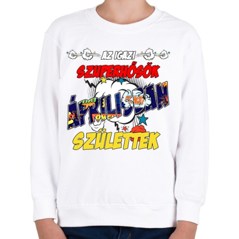 1 kép PRINTFASHION Áprilisi szuperhős - Gyerek pulóver - Fehér