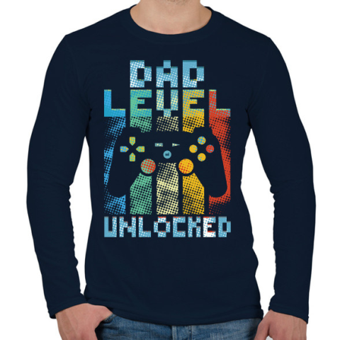 1 kép PRINTFASHION Apuka szint feloldva - Férfi hosszú ujjú póló - Sötétkék