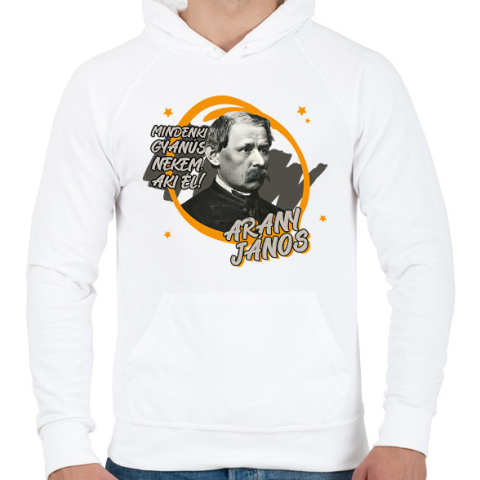 1 kép PRINTFASHION Arany János - Mindenki gyanús - Férfi kapucnis pulóver - Fehér