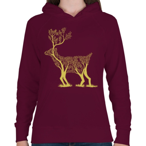 1 kép PRINTFASHION Arany szarvas - Női kapucnis pulóver - Bordó