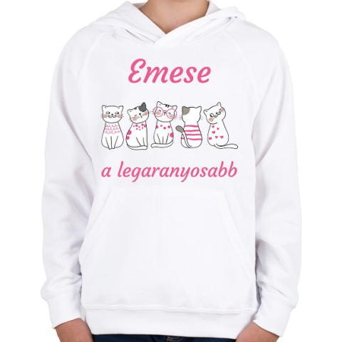 1 kép PRINTFASHION Aranyos cicás minta - Névvel - Gyerek kapucnis pulóver - Fehér