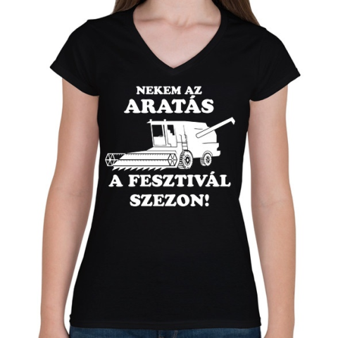 1 kép PRINTFASHION aratas fesztival - Női V-nyakú póló - Fekete