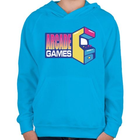 1 kép PRINTFASHION Arcade Games - Gyerek kapucnis pulóver - Azúrkék