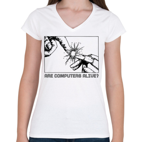 1 kép PRINTFASHION Are computers alive? - Női V-nyakú póló - Fehér