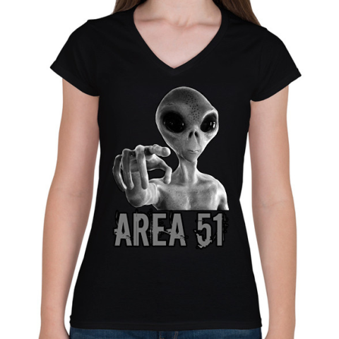 1 kép PRINTFASHION AREA 51 - Női V-nyakú póló - Fekete