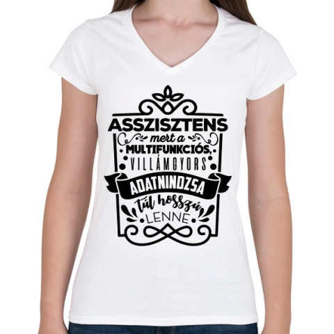 1 kép PRINTFASHION Asszisztens - Női V-nyakú póló - Fehér