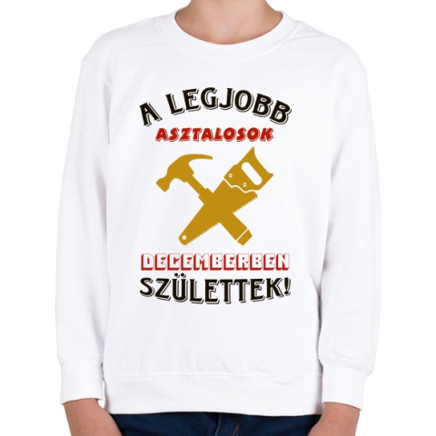 1 kép PRINTFASHION Asztalos szülinap december színes - Gyerek pulóver - Fehér