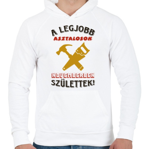 1 kép PRINTFASHION Asztalos szülinap színes - Férfi kapucnis pulóver - Fehér