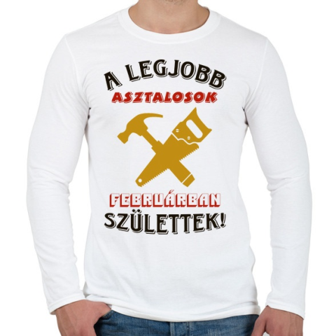 1 kép PRINTFASHION Asztalos szülinapja február színes - Férfi hosszú ujjú póló - Fehér