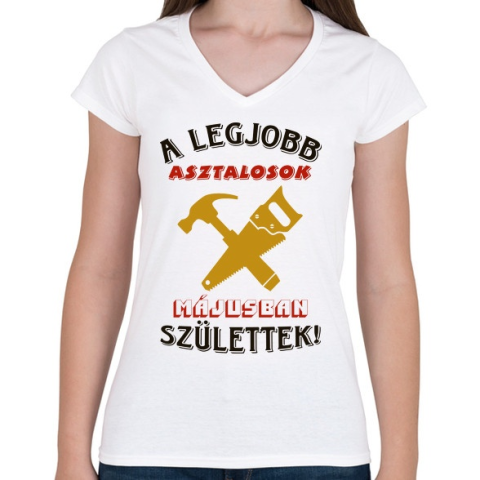 1 kép PRINTFASHION Asztalos szülinapja május színes - Női V-nyakú póló - Fehér