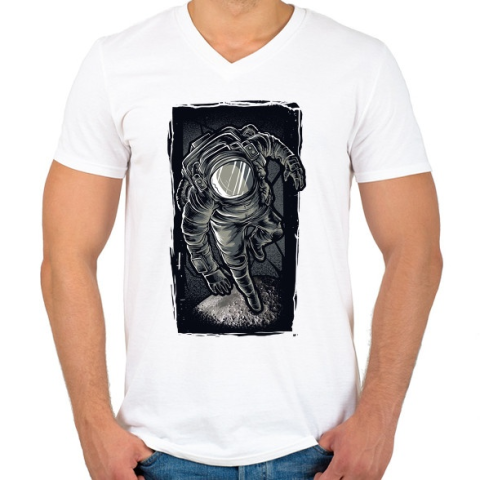 1 kép PRINTFASHION Asztronauta grafika - Férfi V-nyakú póló - Fehér