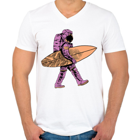 1 kép PRINTFASHION Asztronauta szörf - Férfi V-nyakú póló - Fehér