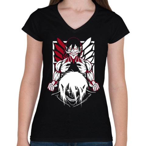 1 kép PRINTFASHION Attack On TItan - Női V-nyakú póló - Fekete