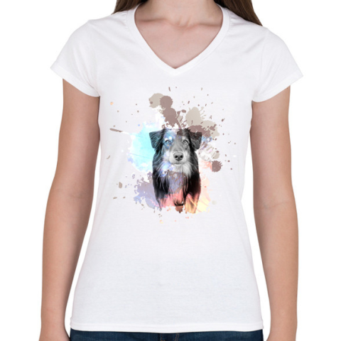 1 kép PRINTFASHION Ausztrál juhászkutya splash - Női V-nyakú póló - Fehér
