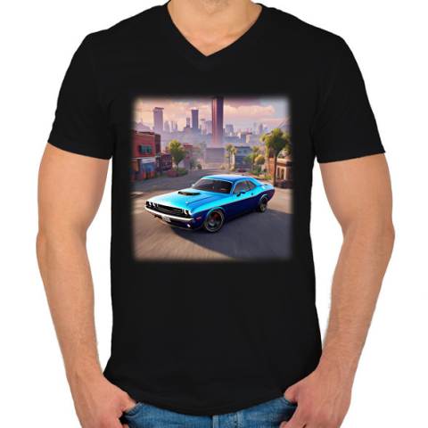1 kép PRINTFASHION autó 3 - Férfi V-nyakú póló - Fekete