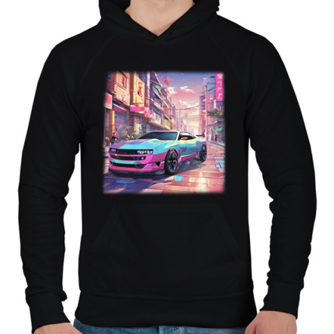 1 kép PRINTFASHION autó - Férfi kapucnis pulóver - Fekete