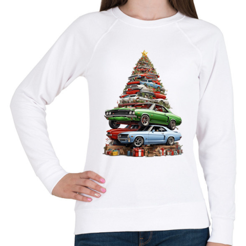 1 kép PRINTFASHION Autós karácsonyfa - Női pulóver - Fehér