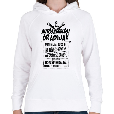 1 kép PRINTFASHION Autószerelés óradíjak - Női kapucnis pulóver - Fehér