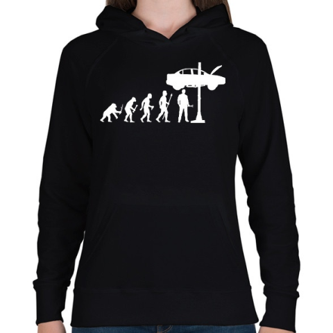 1 kép PRINTFASHION Autószerelő fejlődés - Női kapucnis pulóver - Fekete