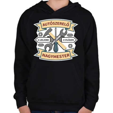 1 kép PRINTFASHION Autószerelő nagymester - Gyerek kapucnis pulóver - Fekete