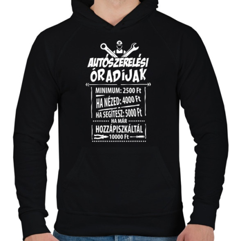 1 kép PRINTFASHION Autószerelő óradíjak - Férfi kapucnis pulóver - Fekete
