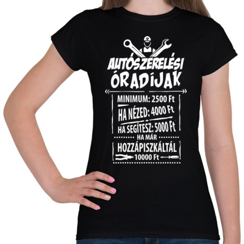 1 kép PRINTFASHION Autószerelő óradíjak - Női póló - Fekete