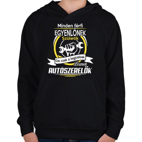 1 kép PRINTFASHION Autószerelők - Gyerek kapucnis pulóver - Fekete