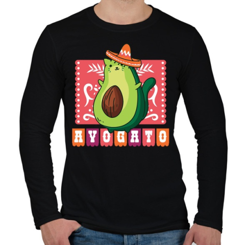 1 kép PRINTFASHION Avokádó macska - Férfi hosszú ujjú póló - Fekete
