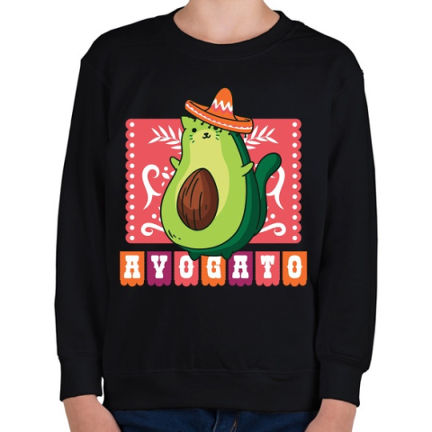 1 kép PRINTFASHION Avokádó macska - Gyerek pulóver - Fekete