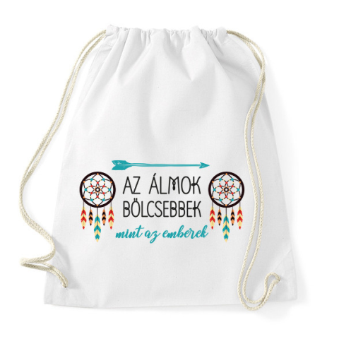 1 kép PRINTFASHION Az álmok bölcsebbek - indián közmondás - Sportzsák, Tornazsák - Fehér