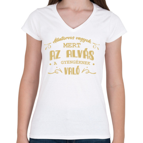 1 kép PRINTFASHION Az alvás a gyengéknek való - Állatorvos - Női V-nyakú póló - Fehér