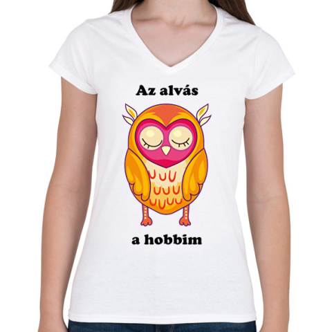 1 kép PRINTFASHION Az alvás a hobbim - Női V-nyakú póló - Fehér