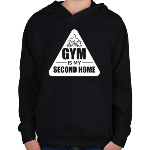 1 kép PRINTFASHION Az edzőterem a második otthonom - Gyerek kapucnis pulóver - Fekete