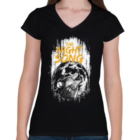 1 kép PRINTFASHION Az éjszaka hangja - Női V-nyakú póló - Fekete