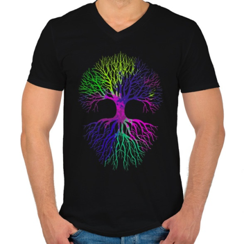 1 kép PRINTFASHION Az élet fája - Férfi V-nyakú póló - Fekete