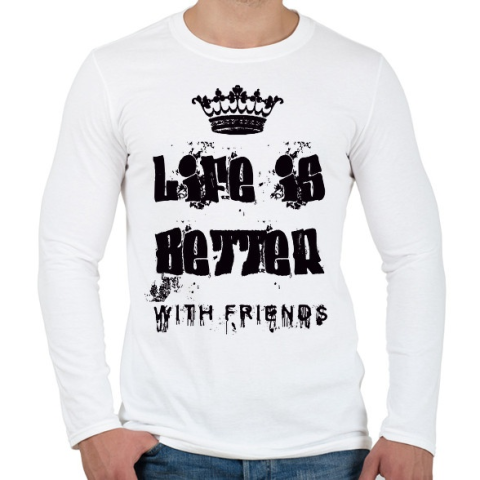 1 kép PRINTFASHION az élet jobb barátokkal - Férfi hosszú ujjú póló - Fehér