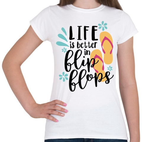1 kép PRINTFASHION Az élet jobb flip-flop papucsban - Női póló - Fehér