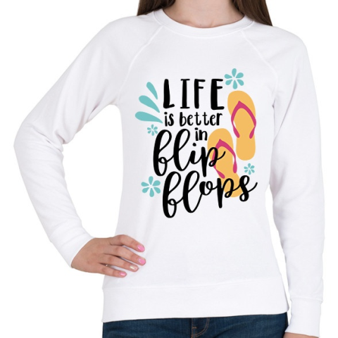 1 kép PRINTFASHION Az élet jobb flip-flop papucsban - Női pulóver - Fehér