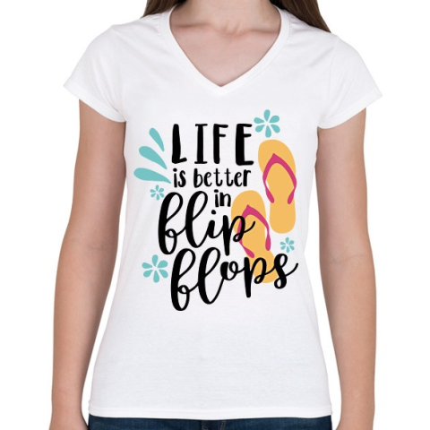 1 kép PRINTFASHION Az élet jobb flip-flop papucsban - Női V-nyakú póló - Fehér