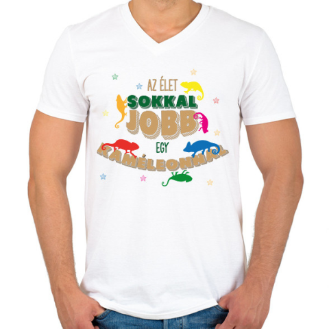 1 kép PRINTFASHION Az élet jobb - Kaméleon - Férfi V-nyakú póló - Fehér