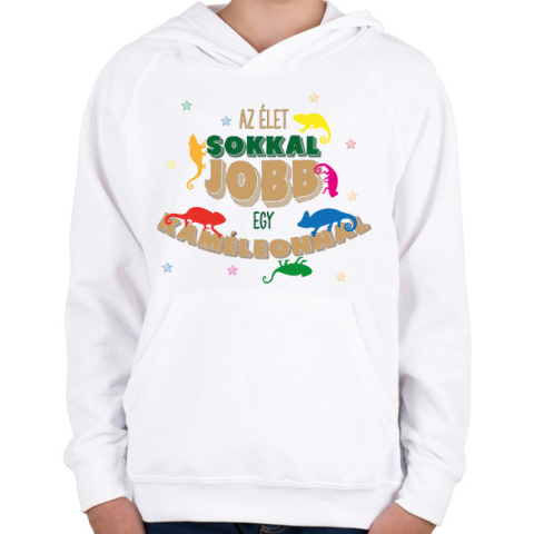 1 kép PRINTFASHION Az élet jobb - Kaméleon - Gyerek kapucnis pulóver - Fehér
