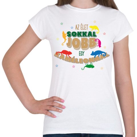 1 kép PRINTFASHION Az élet jobb - Kaméleon - Női póló - Fehér