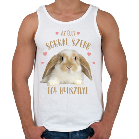 1 kép PRINTFASHION Az élet sokkal szebb egy nyuszival - Férfi atléta - Fehér