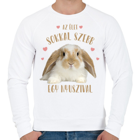 1 kép PRINTFASHION Az élet sokkal szebb egy nyuszival - Férfi pulóver - Fehér
