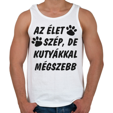 1 kép PRINTFASHION Az élet szép, de kutyákkal mégszebb - Férfi atléta - Fehér