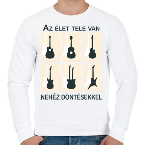 1 kép PRINTFASHION Az élet tele van nehéz döntésekkel - Gitáros minta - Férfi pulóver - Fehér