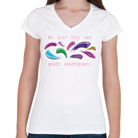 1 kép PRINTFASHION Az élet tele van nehéz döntésekkel - Női V-nyakú póló - Fehér