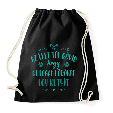 1 kép PRINTFASHION Az élet túl rövid - Kutya - Sportzsák, Tornazsák - Fekete