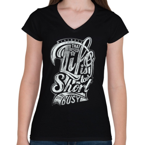 1 kép PRINTFASHION Az élet túl rövid - Női V-nyakú póló - Fekete