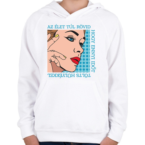 1 kép PRINTFASHION Az élet túl rövid - Pop art - Gyerek kapucnis pulóver - Fehér